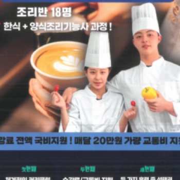 일반고 특화과정 > 조리 [일반고]B. 셰프+바리스타반 - 한식,양식조리+바리스타2급 자격증취득반 |